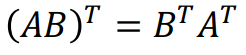 Property of transpose의 경우 Matrix의 크기만 고려해보자. i개의 행과 j개의 열로 구성되어있는 A matrix와 n개의 행과 m개의 열로 구성되어있는 B matrix가 있다고 가정한다면 AB의 크기는 (i x m)이다. 이를 transpose 하게 되면 (m x i)로 이루어진 matrix가 나온다. 우변에서는 B의 transpose 된 (m x n)과 A의 transpose 된 (j x i)를 곱하는 것이기에 (m x i)로 이루어진 matrix가 나온다는 것을 알 수 있다.