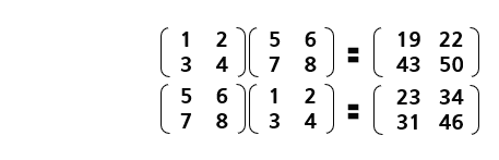 또한 Matrix에서는 AB = BA가 성립될 수 없습니다. 두 Matrix의 크기가 다른 경우에는 연산 자체가 불가능하고 Matrix의 위치에 따라 row를 기준으로 곱하느냐, column을 기준으로 곱하느냐가 달라지기 때문입니다.