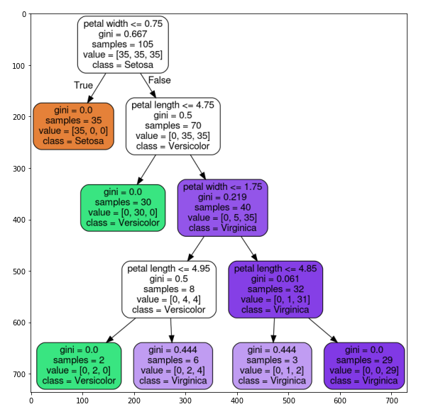 This can be said to be a splitting condition because the information benefit is determined by the corresponding impurity indicator. Due to these classification conditions, the decision tree repeats this classfication task on all child nodes until the leaf node is pure. However, if the maximum depth of the tree is not limited, it is likely to be overfitting, so we proceed with pruning.