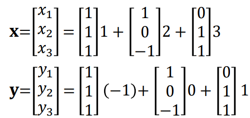 먼저 column을 vector로 쪼개는 combination의 예입니다.