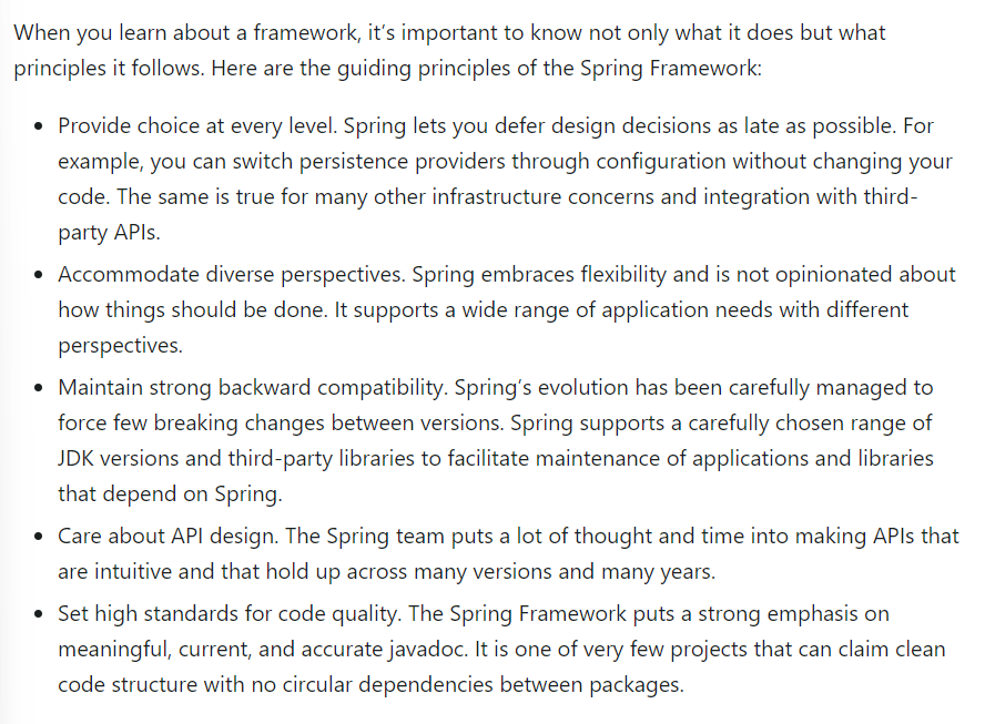 스프링을 공부하면서 '왜 이렇게 만들었지?'를 생각했을 때 이 디자인 철학을 고려하면 좋을 것 같다.