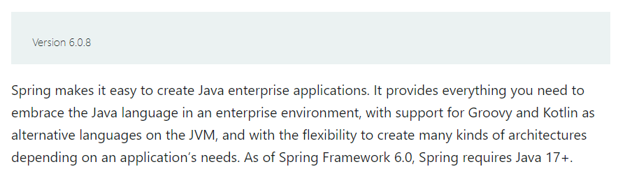 스프링 프레임워크의 현재(2023년 04월 14일 기준) 버전은 6.0.8이다.