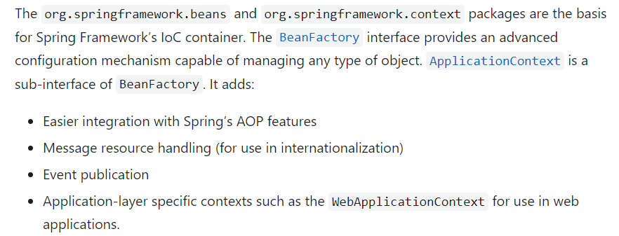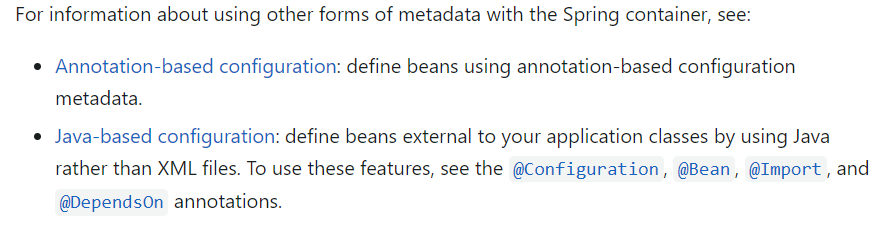 공식문서에서는 ApplicationContext가 빈을 정의하는 방법에 대해서도 설명하고 있다.