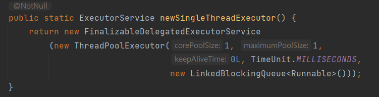 - corePoolSize == maximunPoolSize == 1