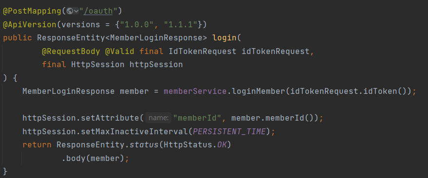 아까 위에서 언급했던 대로 저희는 회원 가입을 지원하지 않기 때문에 일반 로그인을 사용하는 API는 구 버전인 '1.0.0' 버전으로 남게 됩니다.