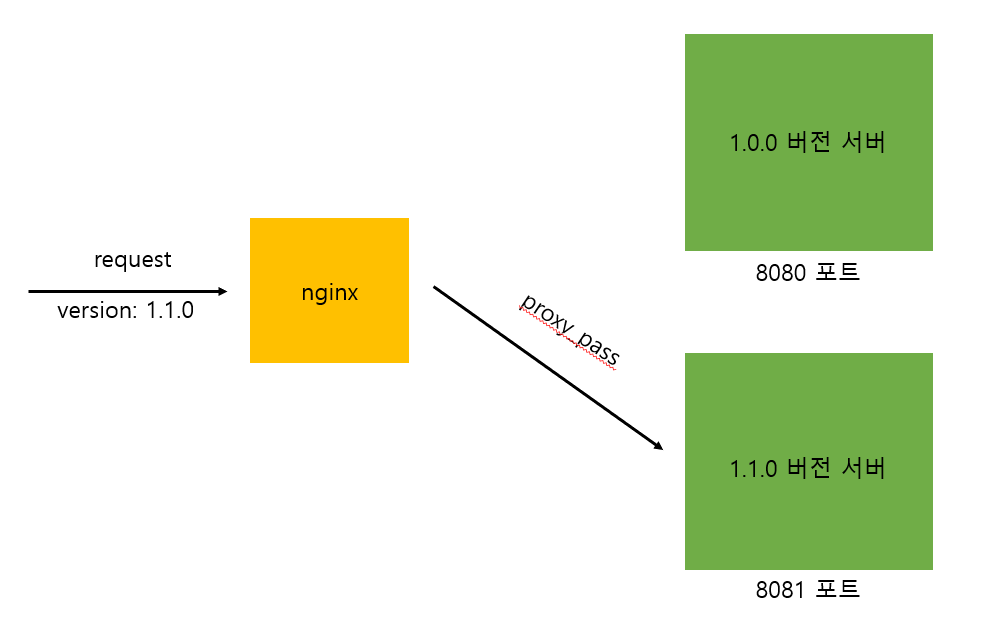 서버를 띄울 때 해당 서버가 몇 버전인지를 명시하고, 웹서버에서는 요청에서 버전을 파싱해 가져온 뒤 그에 맞는 서버로 요청을 전달하는 방식입니다.