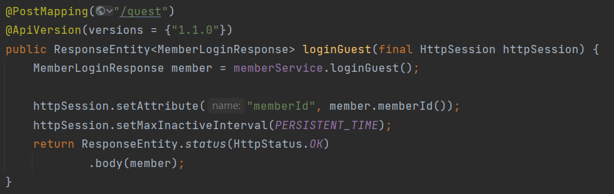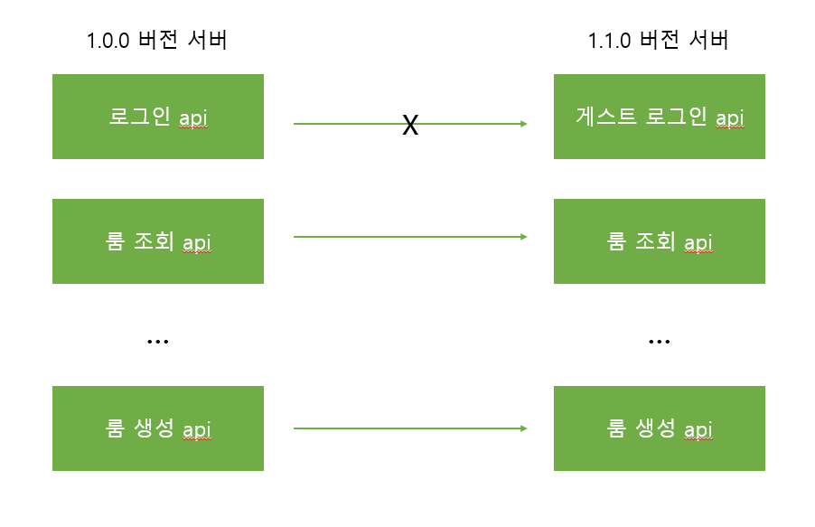 신 버전에서 사용할 API는 '1.1.0'임을 명시해줄 수 있죠. 참고로 게스트 로그인은 기능이 확장된 것이기 때문에 Pathes를 올리는 것이 맞지 않나?라고 하실 수 있겠지만 현재는 기존 API를 삭제해서 Minor Version이 올라간 상황임을 인지해주세요.